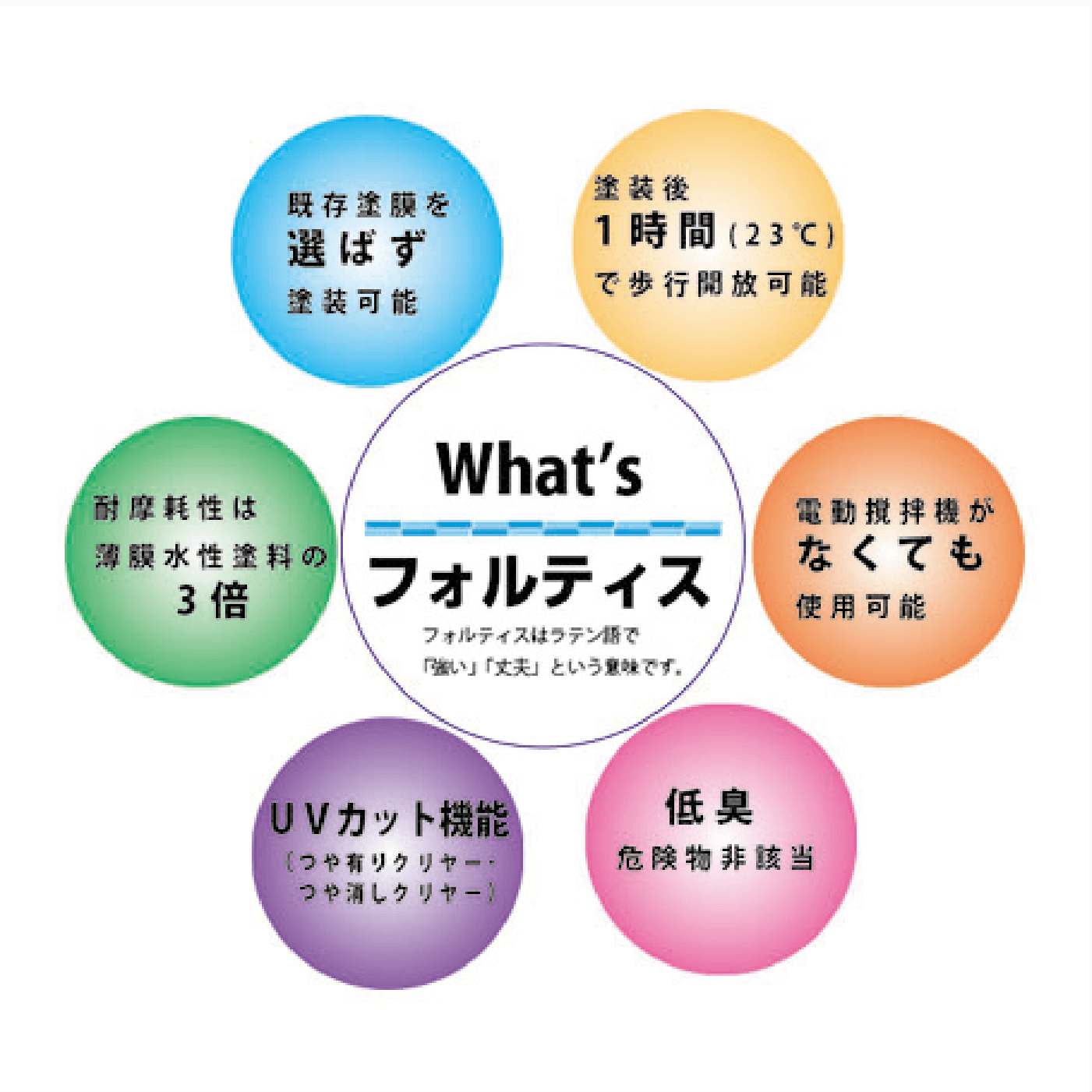| よくあるお悩み | 床に既存で何が塗られているかわからない 重量物の通行に耐えられるものがほしい 歩行開放をすぐにでもしたい かくはん機を持っていない 操業中に塗りたい 退色しないものがないか 店舗なので臭わないものがいい |